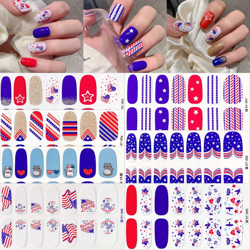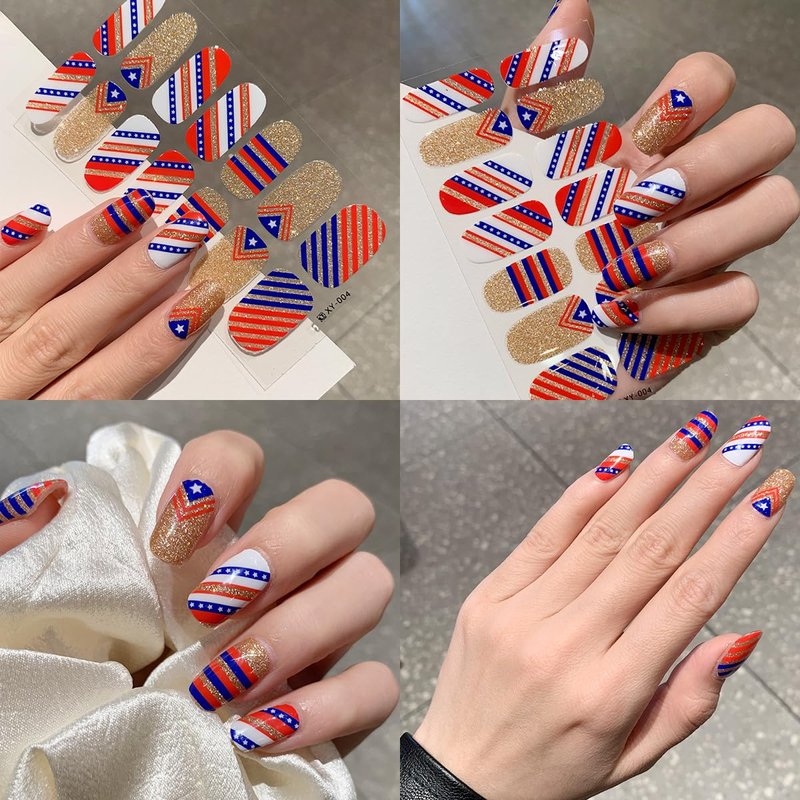 - Easy to Use - Our independence day nail polish strips come with adhesive, you can stick them on nails directly, then trim the excess parts and use the provided nail file to file the stickers along the edge of nail, so as to make them fit your nails well.