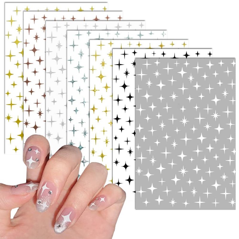 - Stars Design: 3D luxury nail stickers have 7 different colour, white, gold, silver, black, rose gold, laser gold, laser silver,these nail stickers present different sparkle effects from different angles gives an elegant visual sense.