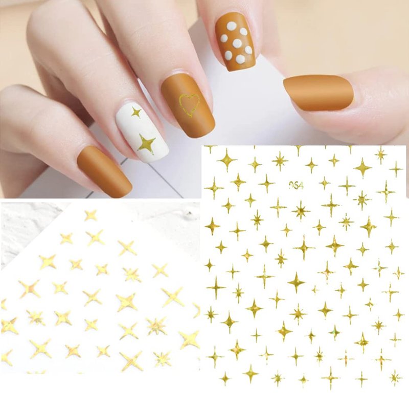 - Package : 7 sheets star gold nail art stickers 3D stickers for nails. Exquisite Gold nail design decoration can provide you with a variety of choices, allowing you to easily DIY your designer nail decoration at home.