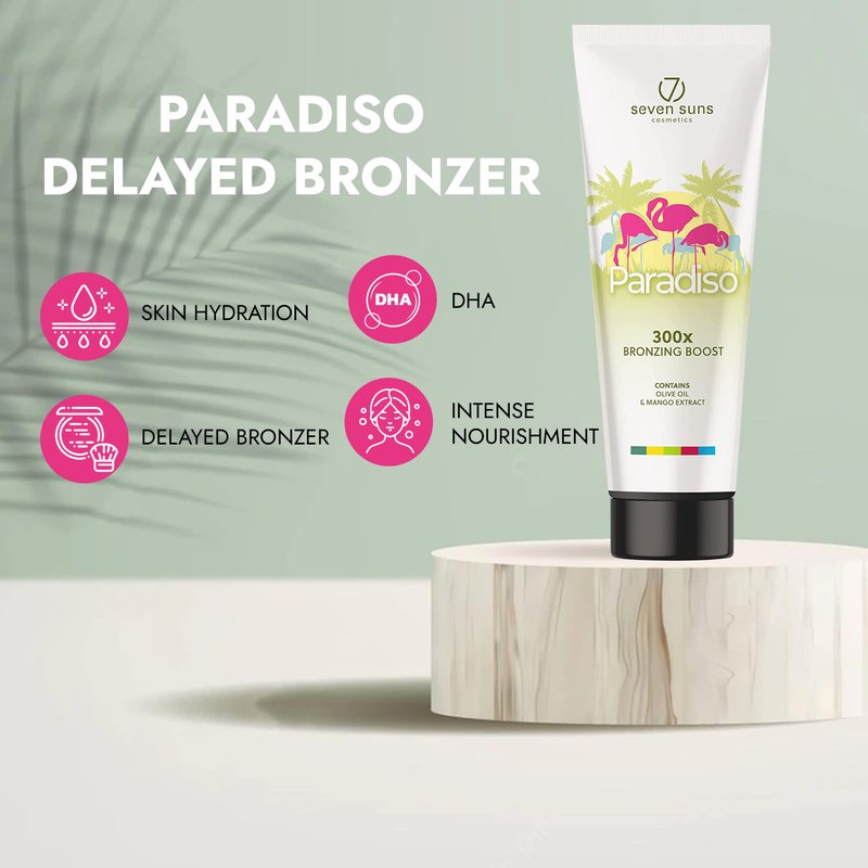 - PARADISO WHITE BRONZER: Paradiso tanning lotion is a lotion for those who wish to have long-lasting effects without instant bronzers. It has a mixture of natural oils and the most effective delayed bronzers. The white bronzer is absorbed quickly and leaves the skin soft and firm. The tan obtained thanks to Paradiso is deep and intensive.