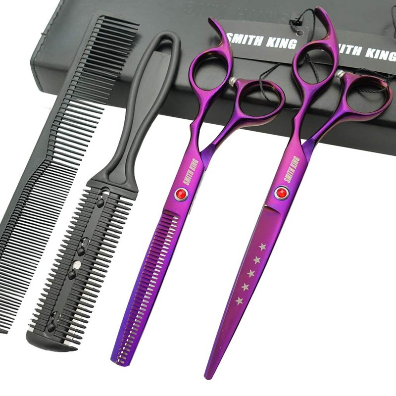 7.0 Inches Hair Cutting Scissors Set with Combs Lether Scissors Case,Hair cutting shears Hair Thinning shears For Personal and Professional (Violet)