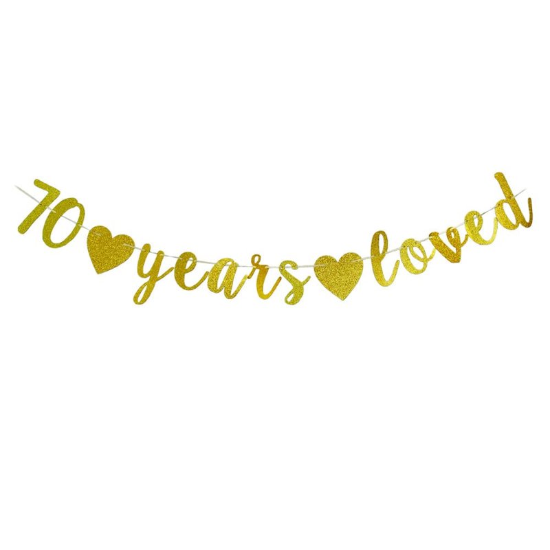 - 70 Years Loved banner Happy 70th Birthday Party Sign ,70Th Anniversary/Birthday Party Decorations Supplies