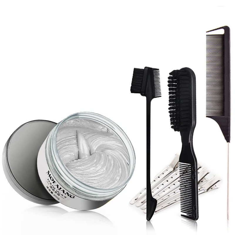 7.05oz Gray Temporary Hair Color Wax Styling Hair Wax Instant Coloring Clay with 3 Dying Brush + 5 Hair Clips + 3 Shawl, Disposable Mud for Halloween, Party, Cosplay, Christmas (Gray)