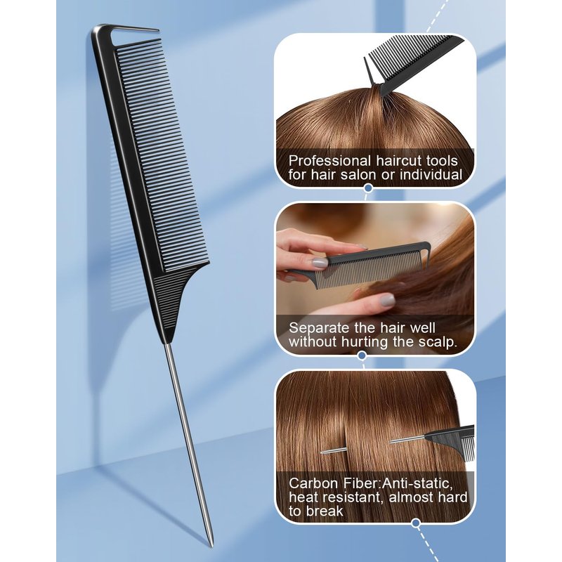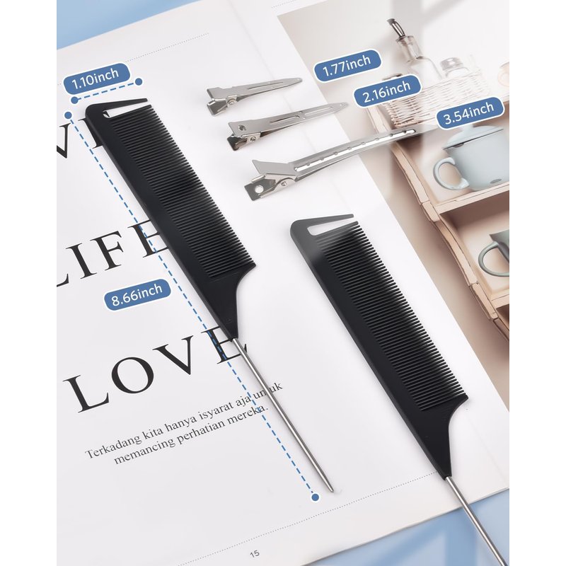 - Parting Combs Included: Made from carbon fiber, these 2pcs combs with metal pick are stable and not easy to break, they are a practical tool for parting, combing, sectioning, coloring, separating, styling your hair, and more.