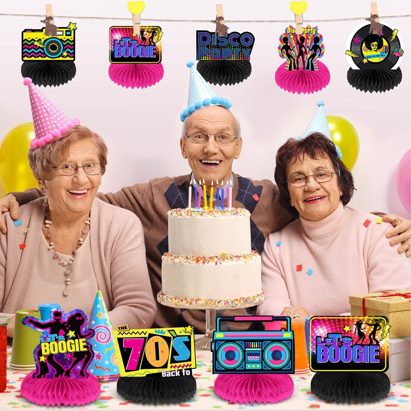 - Nice 70s party addition: these cool 70s party table centerpieces are nice additions to your 70s themed birthday party decorations; They can be matched with your other 70s party decorations, such as 70s party tableware, 70s party banners, 70s party paper-cutting and so on
