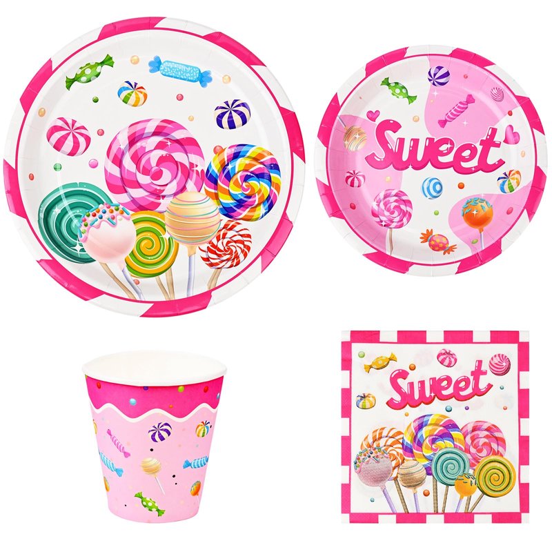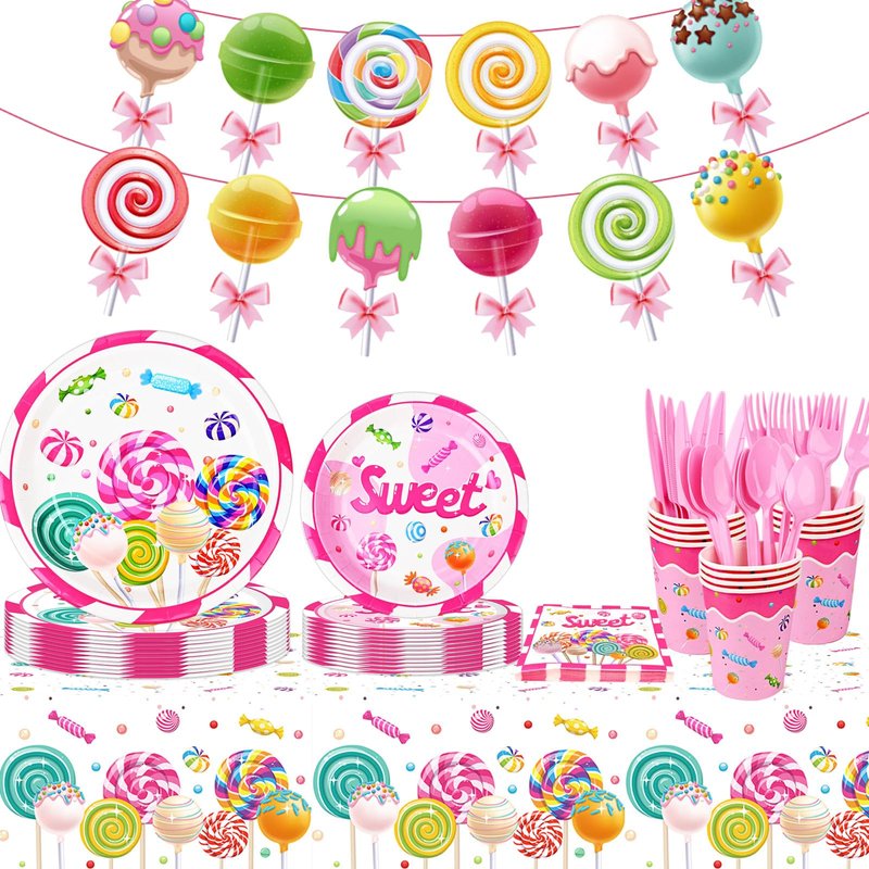 - 🍭【Candyland Theme】: Our candyland theme tableware set is designed with diverse patterns of candies, vibrant and sweety, perfect for birthday parties, baby shower, lollipop themed parties, giving people a relaxing and cheerful feeling. In addition to being visually romantic and sweet, its warm hues will make food look more delicious, leaving an impression for your guests!