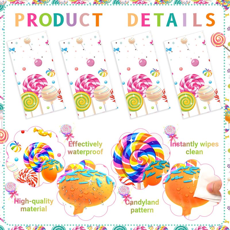 - 🍭【Reliable Material】: The candy print tablecloth is made of thick and durable plastic, non-fading, so you don't need to worry about the drink or oil splashing on it; The sweet candy print tableware are all made of reliable material, so you can rest assured to use them for preparing a wonderful candyland party for your children.