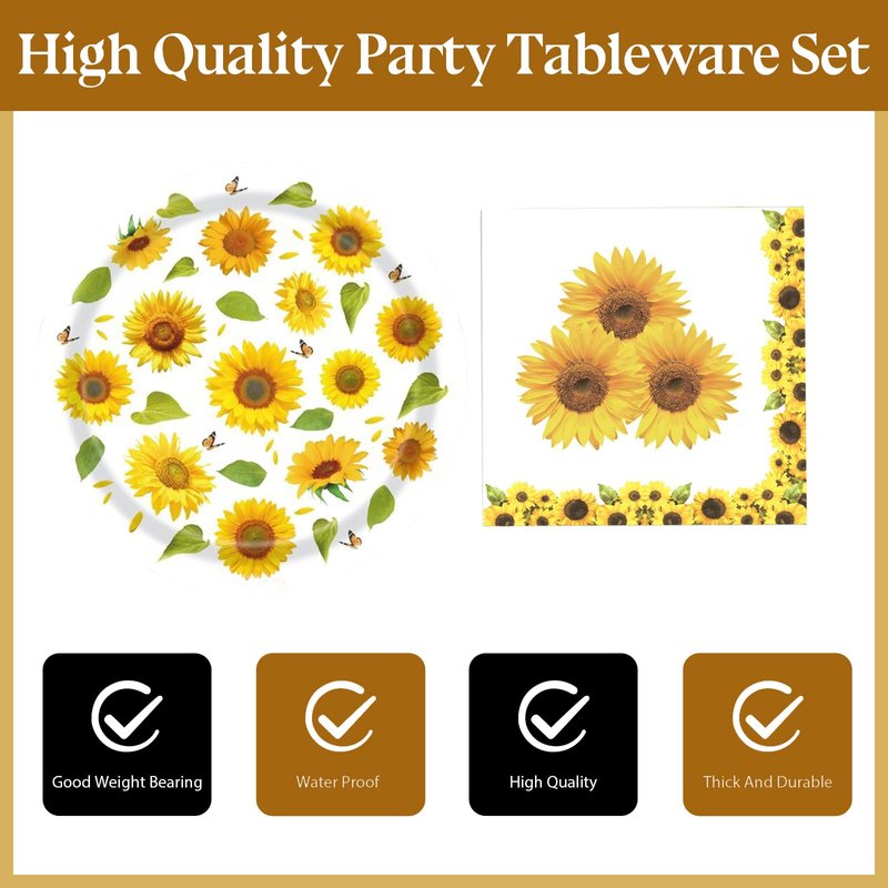 - High-Quality Material: Made of 100% food-grade paper, these Sunflower plates and napkins are firm, stable, and strong enough to hold a full plate of food while remaining tear-resistant, ensuring that your party guests have a worry-free dining experience.