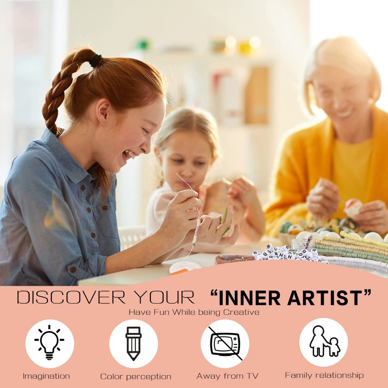 - 【Perfect for Both Fun and Creativity】This clay bead kit will spark your interest in crafts and creativity. Try to make your personalized bracelets, necklaces, earrings, anklets, jewelry, and more. This bracelet beads kit can also improve Children’s creativity, imagination, color perception, Hand-eye coordination. Have fun while being creative!