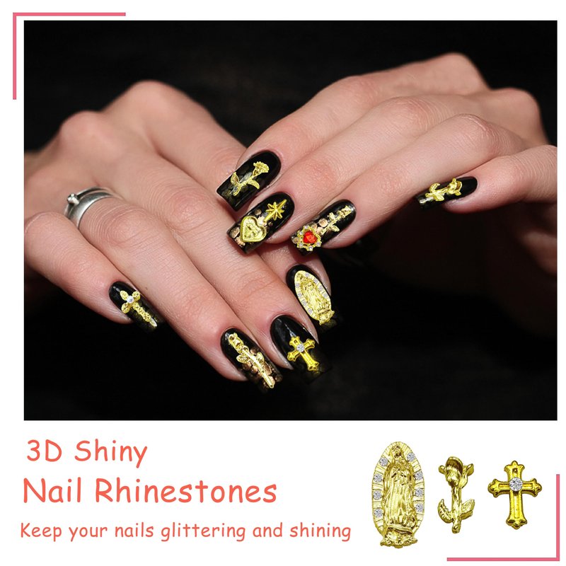 - Elegant Designs of 3D Nail Charms Gold Rhinestones: The nail decorations charm is eye catchy and versatile designs of different crosses. The y2k nail charms cross design kit always looks very stylish with all your daily outfits.