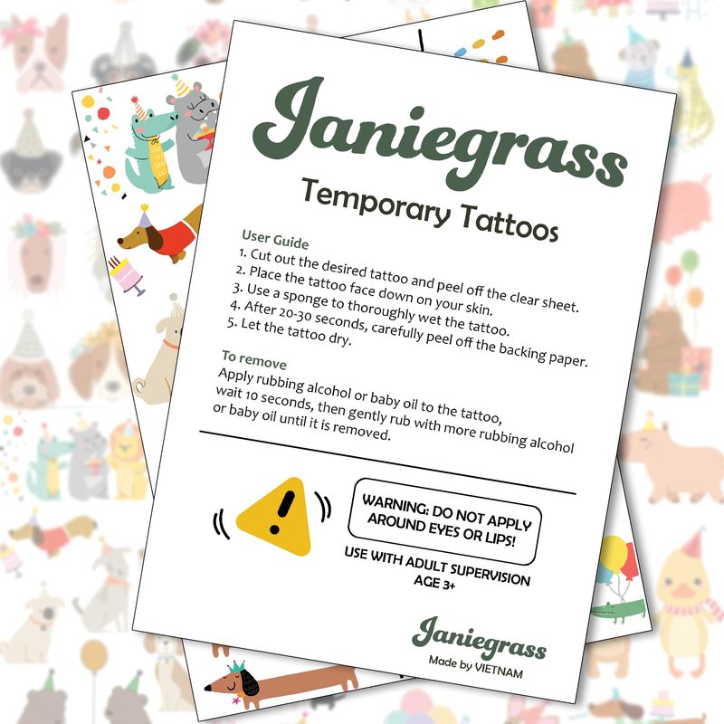 - [Usage] Lay your preferred design face down on a dry, clean surface. Next, gently pat the tattoo paper with a damp paper towel. After 10-20 seconds, take off the tattoo paper and enjoy!