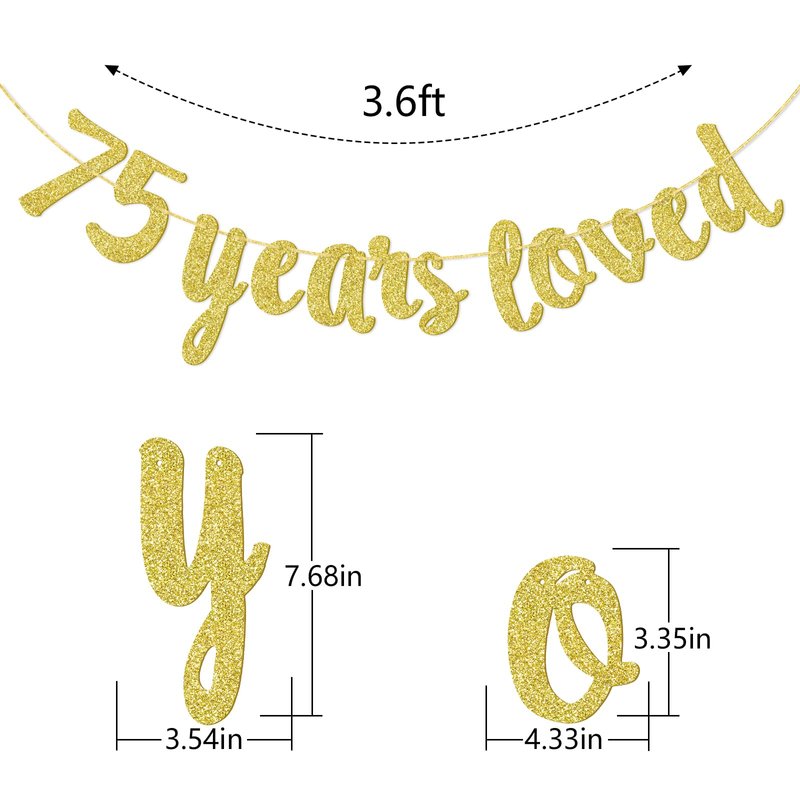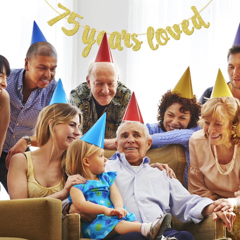 75 Years Loved Banner - Happy 75th Birthday/Wedding Anniversary Party Decorations-Gold