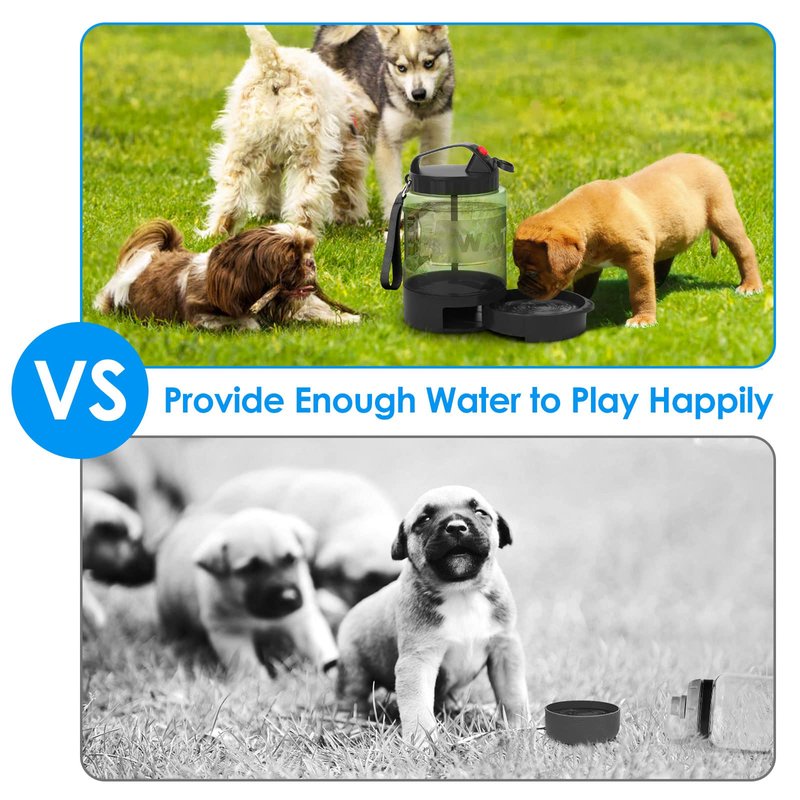 - ✅【Safe & Leak-proof】The dog travel accessories are made of ABS, BPA free, safe and durable. In addition, the sealed silicone gasket inside the lid of dog water bottle portable the helps prevent leaks, so you don't have to worry about leaks and wasted water while travelling. Give you and your pet a peace of mind and relaxing outdoor travel.