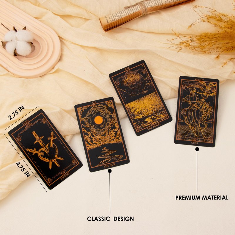 - ☪ 78 BLACK CLASSIC TAROT CARDS: SUGEYA tarot cards has a unique design and original look, inspired by traditional tarot cards and combined with unique images and mystical symbols. It is perfect for beginners and expert readers alike. This deck is a powerful divination tool to help you connect with your higher self and bring you guidance from cosmic sources.