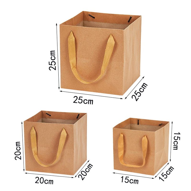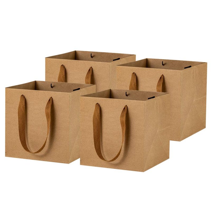 7.8inch Square Brown Kraft Paper Bags Flowers Gift Bags with Ribbon Handles,Pack of 12