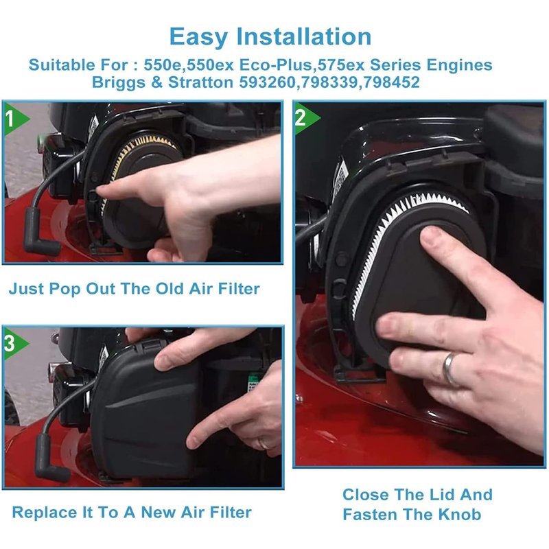 - Upgrade your small engine's air filter with the 593260 Air Filter, designed to provide accurate sizing and convenient installation. eliminating the need for cleaning the filter and risking poor engine performance. Instead, the 798452 air filter allows your engine to breathe fresh air, improving efficiency and extending its service life.