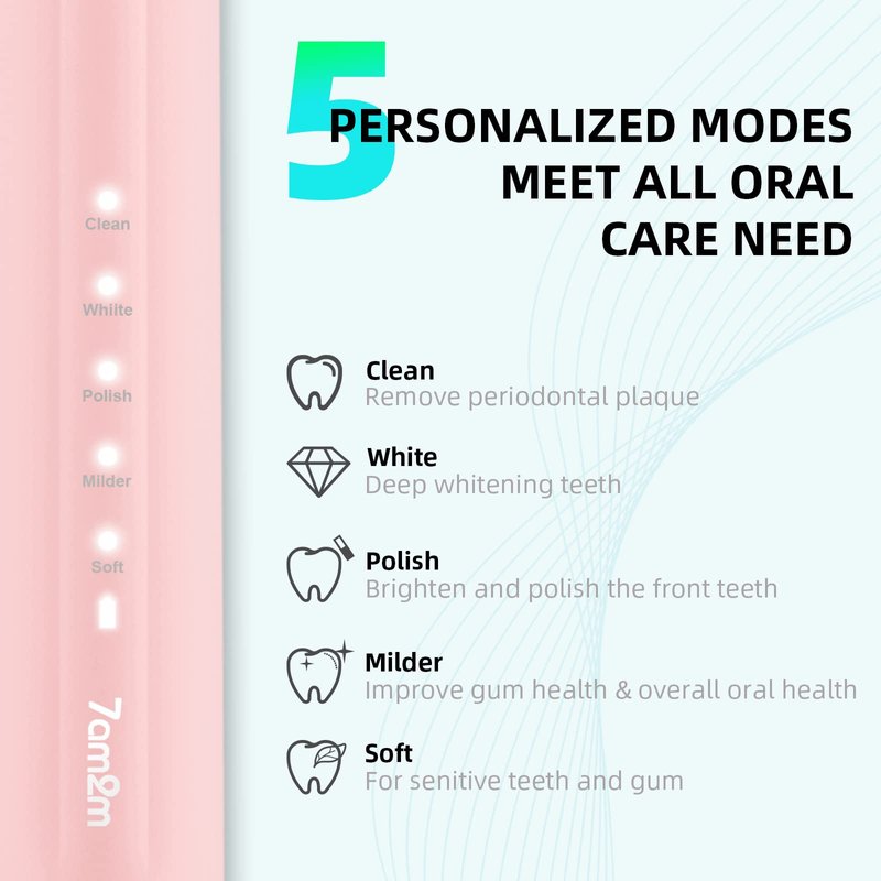 - 【2 Year Warranty and High-Performance Brushing Modes】 Clean, White, Polish, Milder, Soft. Suit different conditions of teeth of gums, so you can choose different modes according to your preferences and dentist's recommendations.