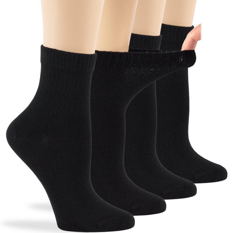 7BIGSTARS KINGDOM Women's Viscose From Bamboo Diabetic Ankle Socks, Non-Binding Loose Fit - 4 Pack Medium - Solid Lightweght - Sock Size 9-11 Shoe Size 5-9 M Black