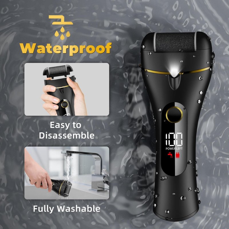 - IPX7 Waterproof: The electric callus remover with high level IPX7 waterproof, enabling both wet and dry use. Its entire body is designed to be safely rinsed under running water, making it easy to clean directly with water after use. This ensures effective elimination of bacteria breeding in foot crevices, thus safeguarding foot health.