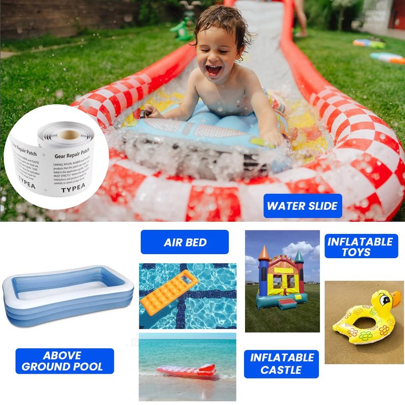 - 【Can Be Cut Freely】 3 in x 7 ft roll patch repair kit can be cut freely to repair any holes, mo matter larger or small holes. It’s a very flexible size! It can perfectly repair the puncture and leakage of the air mattress, bounce house, swimming Pool, tent, canvas, canopy, pool floats, tubes air bed and inflatable toys, save your money and time.