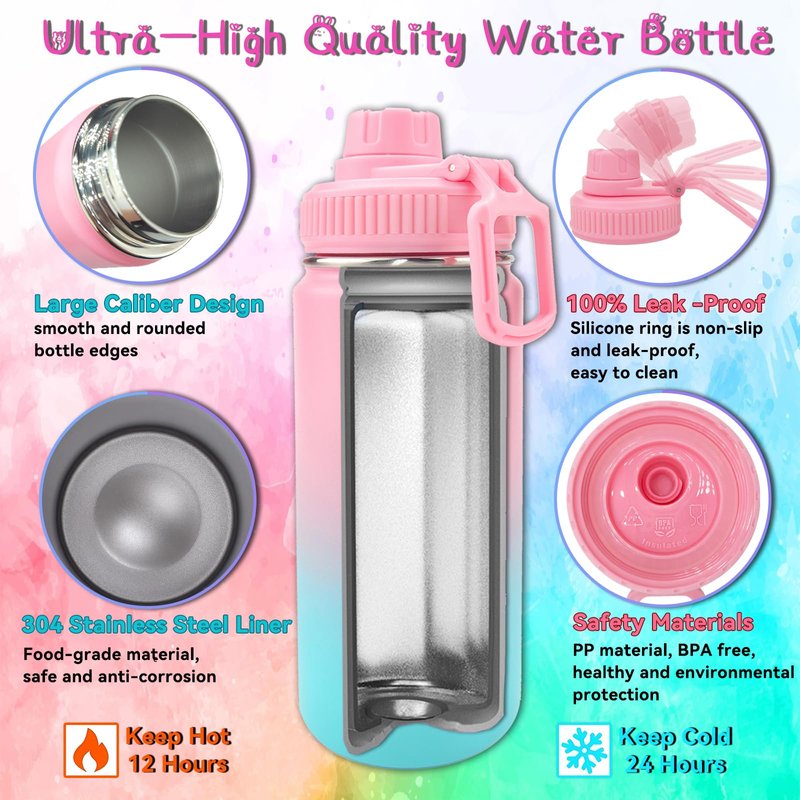 - 【Ultra-High Quality Water Bottle】:Made from high-quality 304 stainless steel, this water bottle is not only durable but also eco-friendly. The secure lid ensures no spills, keeping drinks fresh and cool for hours.It's the perfect size for little hands and can hold up to 16 ounces of water, making it ideal for school, sports, or any adventure.