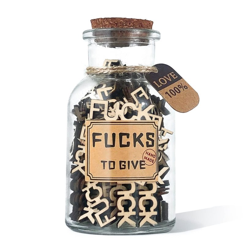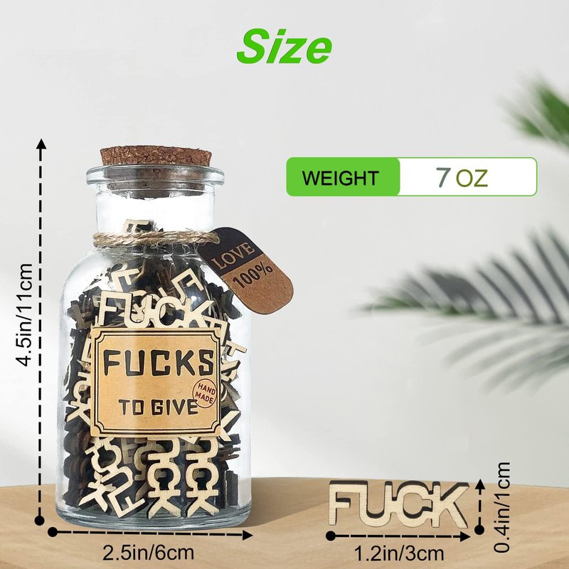 7Oz Fucks to Give, Jar of Fucks Gift Jar, Fuck Wooden Cutouts Letter Piece, Funny Swear Jar for Friends, Funny Gifts for Birthday, Gifts for Mom, Valentines Day Gift, Gag Gift, Small Gift, Desk Decor