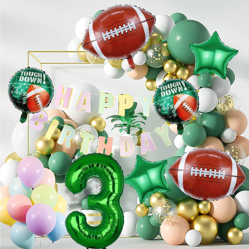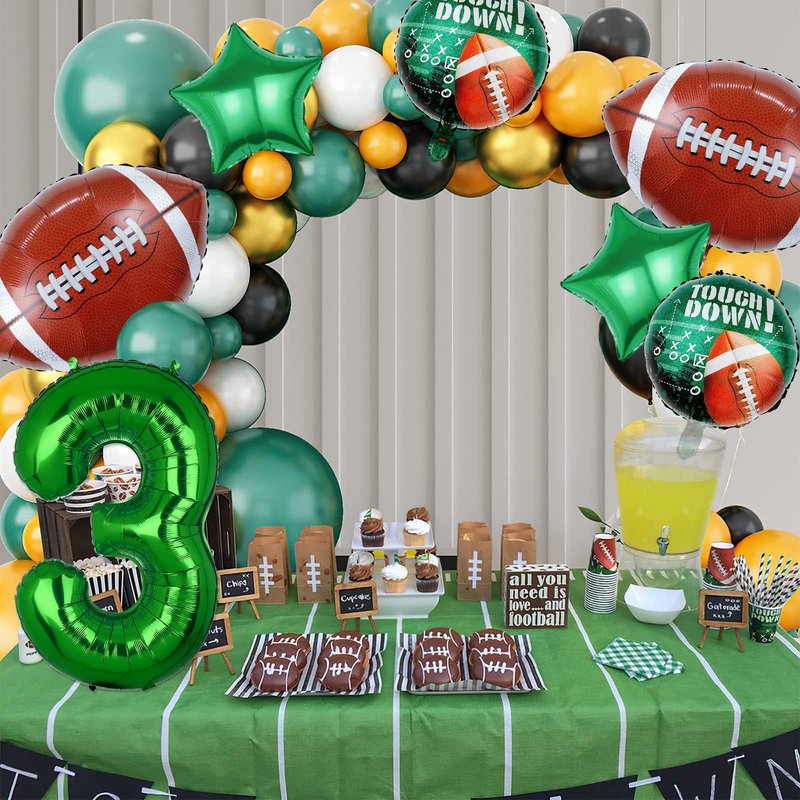 - 🏈Package Included: 2PCS 27*24 Inch football Foil Balloons, 2 pcs 18 Inch football round green balloons, 2pcs18’’ green star balloons, 1pc 40 inch green number balloon.Totally 7PCS. Perfect for a football theme birthday party.