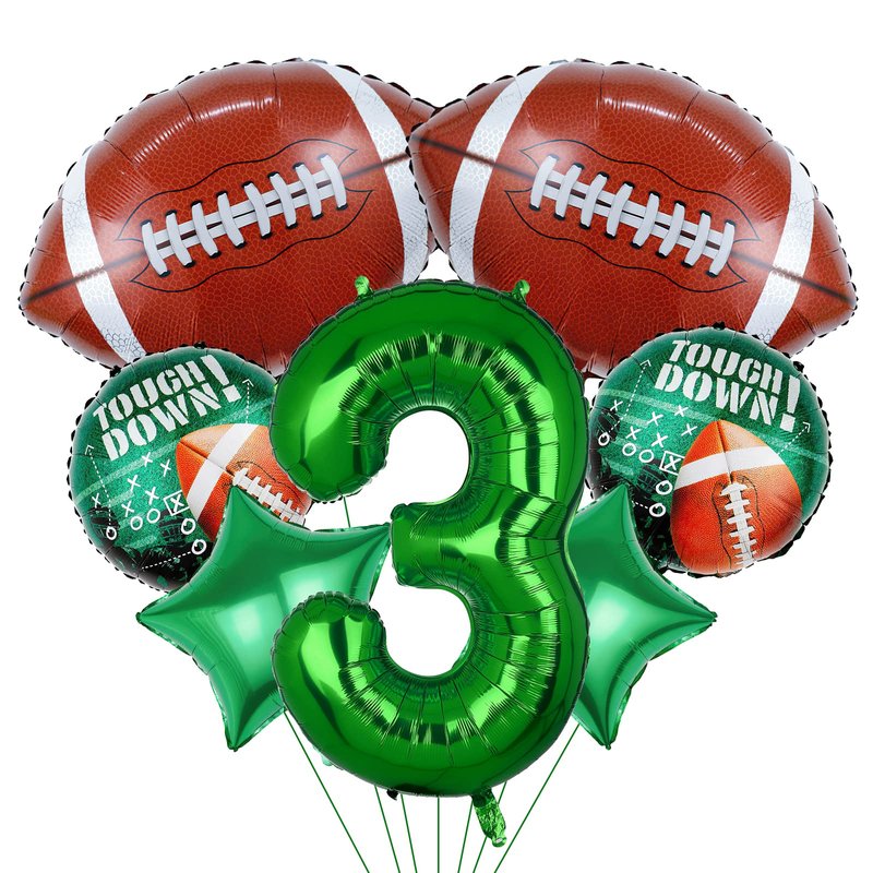 7pcs Football Balloons, Football Birthday Number Mylar Foil Balloon, Football Sport Them Party Supplies Football 3rd Birthday Decorations (3rd)