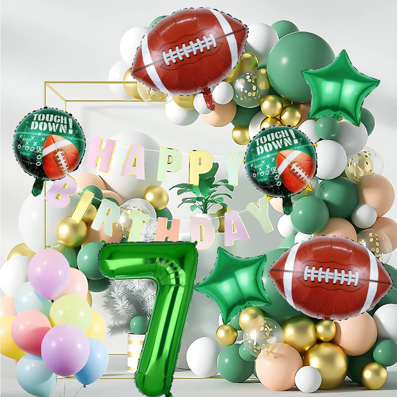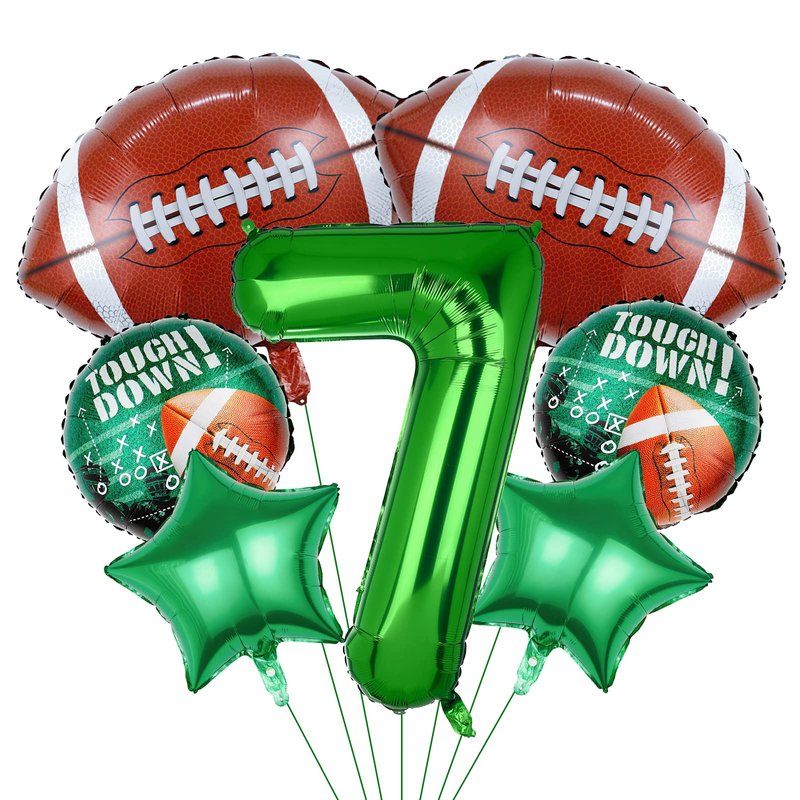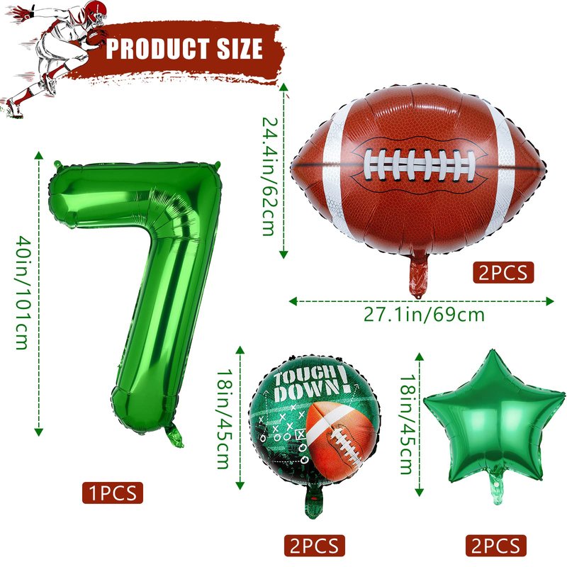 - 🏈Package Included: 2PCS 27*24 Inch football Foil Balloons, 2 pcs 18 Inch football round green balloons, 2pcs18’’ green star balloons, 1pc 40 inch green number balloon.Totally 7PCS. Perfect for a football theme birthday party.