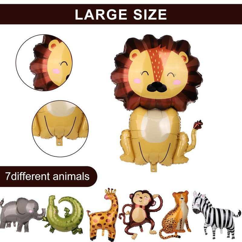 - Package Include: You will receive 7 large animal balloons, including elephant, lion, leopard, zebra, crocodile, monkey, giraffe, rich animal species can perfectly decorate your jungle party.