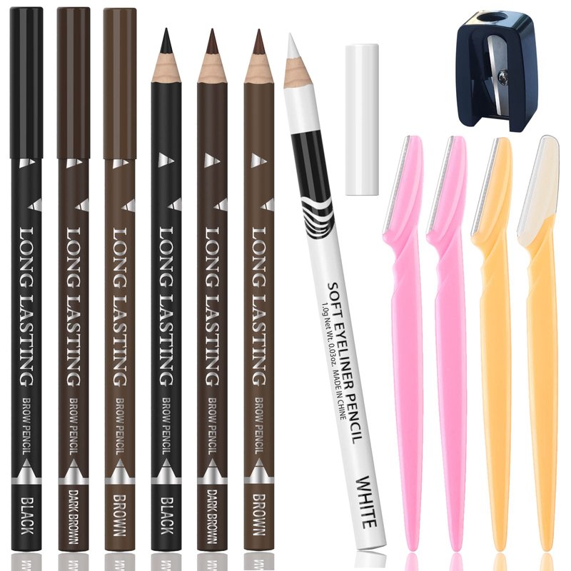 - 1.【7High quality eyebrow pencil】2Dark Brown 2 Dark Curry 2 Black +1 White eyebrow pencil,4 eyebrow trimmers。