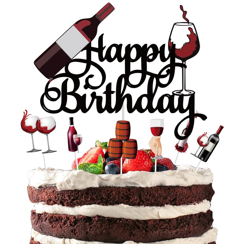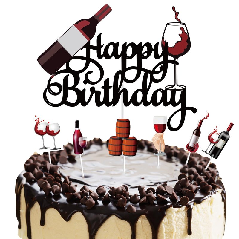 7Pcs Red Wine Happy Birthday Cake Topper Sets Black Glitter Beers Wine Glass Cake Decorations Set Celebrating Cheers to 21 30 40 50 60 Years Theme Birthday Party Supplies Set for Men Women