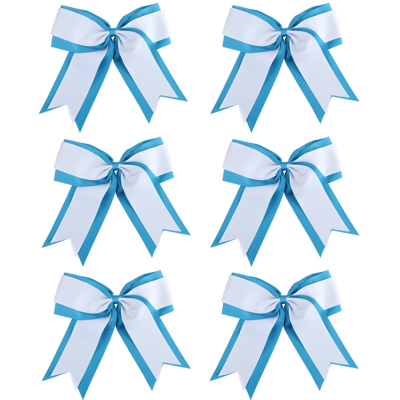 8 Inch 2 Colors Cheerleader Bows 2 Layers 6 Pcs Ponytail Holder Cheerleading Bows Hair Elastic Hair Tie (Light blue/White)