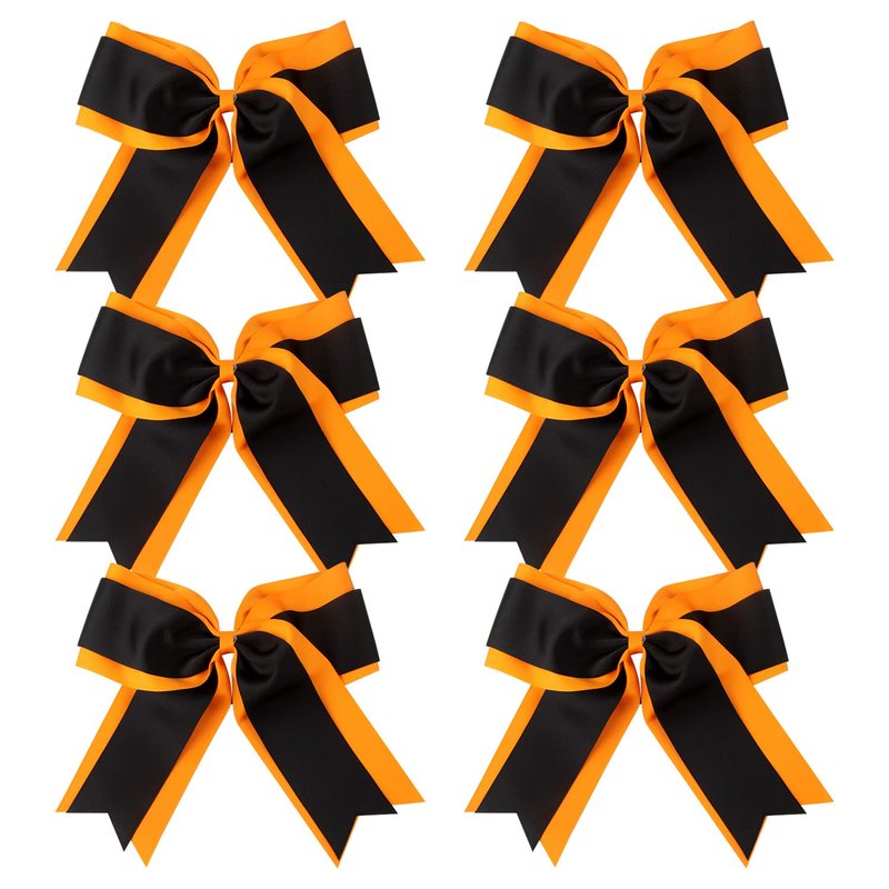 8 Inch 2 Colors Cheerleader Bows 2 Layers 6 Pcs Ponytail Holder Cheerleading Bows Hair Elastic Hair Tie (Orange/Black)