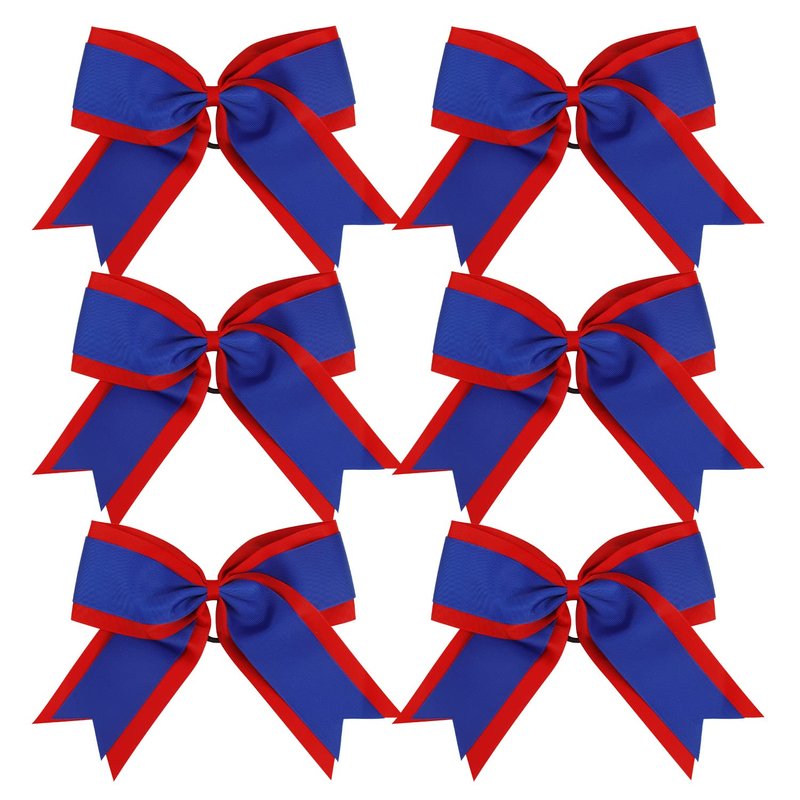 8 Inch 2 Colors Cheerleader Bows 2 Layers 6 Pcs Ponytail Holder Cheerleading Bows Hair Elastic Hair Tie (Red/Royal blue)