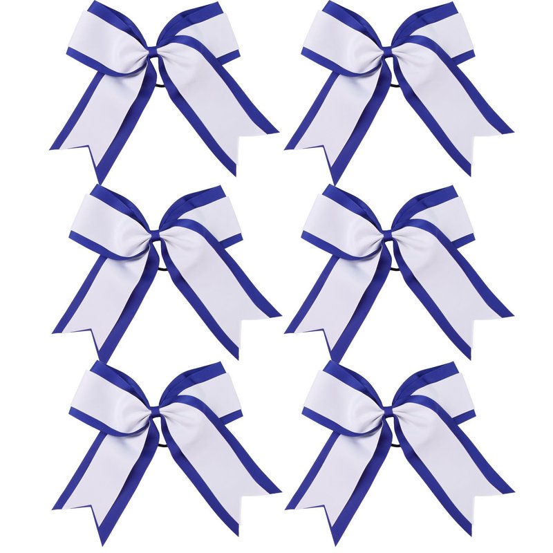 8 Inch 2 Colors Cheerleader Bows 2 Layers 6 Pcs Ponytail Holder Cheerleading Bows Hair Elastic Hair Tie (Royal blue/White)