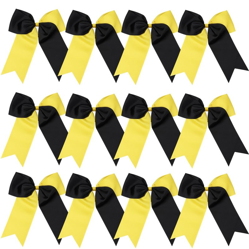 8 Inch 2 Colors Jumbo Cheerleader Bows Ponytail Holder Cheerleading Bows Hair 12 Pcs (Yellow/Black)