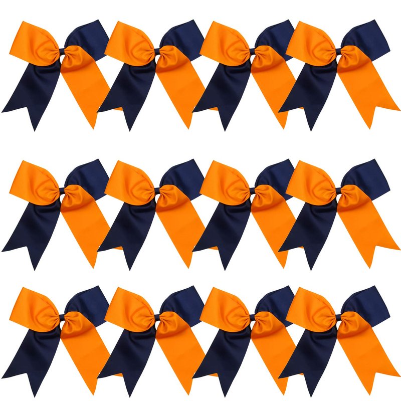 8 Inch 2 Colors Jumbo Cheerleader Bows Ponytail Holder Hair Tie Cheerleading Bows Hair Bow for College (Orange/Navy Blue)