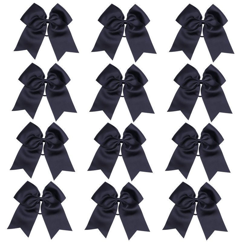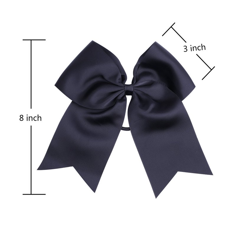 8 Inch Cheerleader Bows Ponytail Holder Cheerleading Bows Hair Tie(Black)