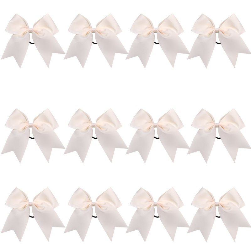 8 Inch Cheerleader Bows Ponytail Holder Cheerleading Bows Hair Tie(Cream color)
