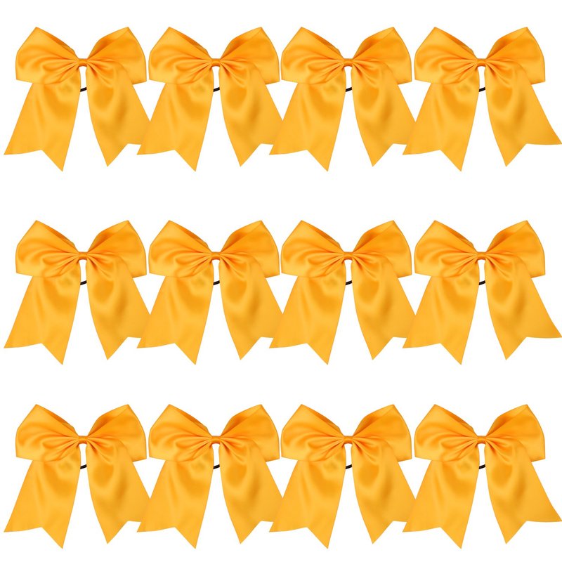 8 Inch Cheerleader Bows Ponytail Holder Cheerleading Bows Hair Tie(Gold)