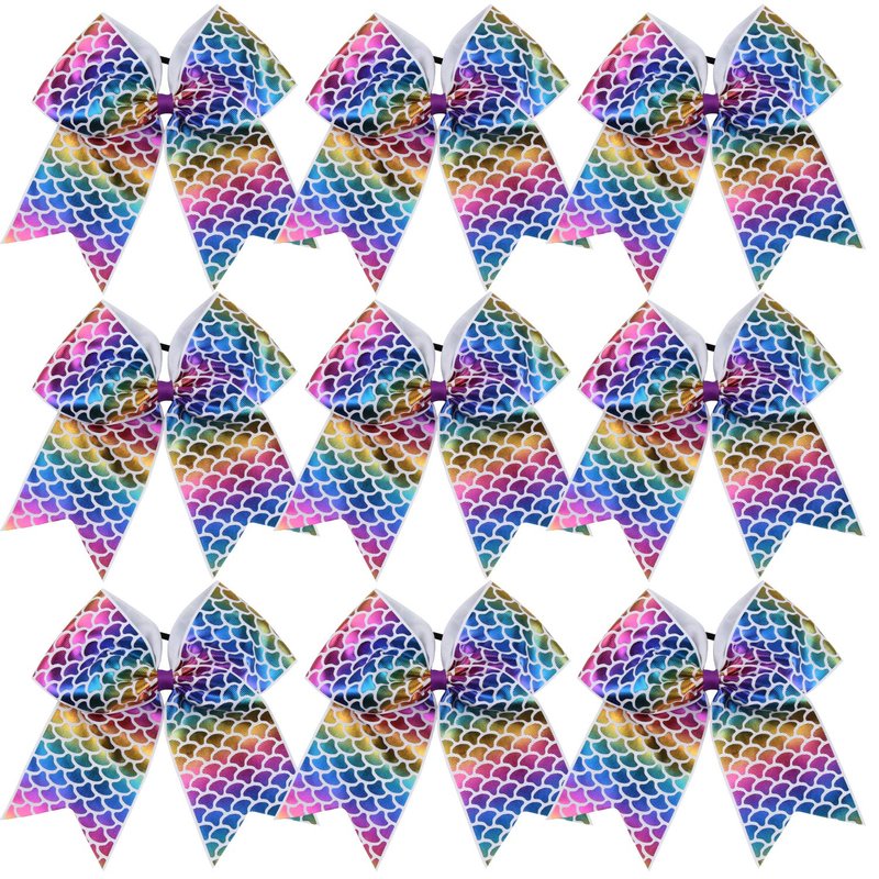 8 Inch Cheerleader Bows Ponytail Holder Cheerleading Bows Hair Tie(Mermaid)