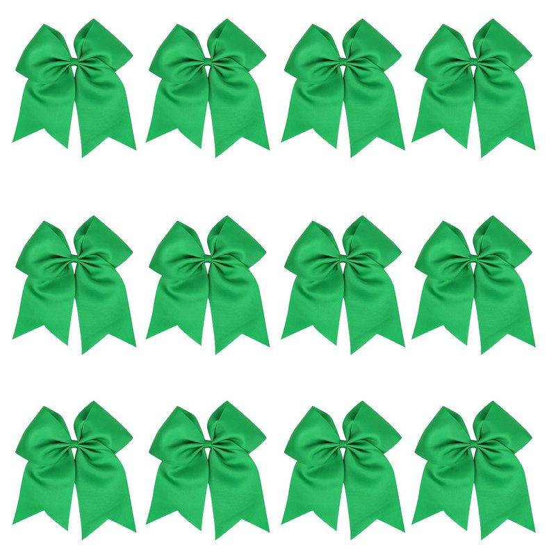 8 Inch Cheerleader Bows Ponytail Holder Solid Color Cheerleading Bows Hair Tie (Green)
