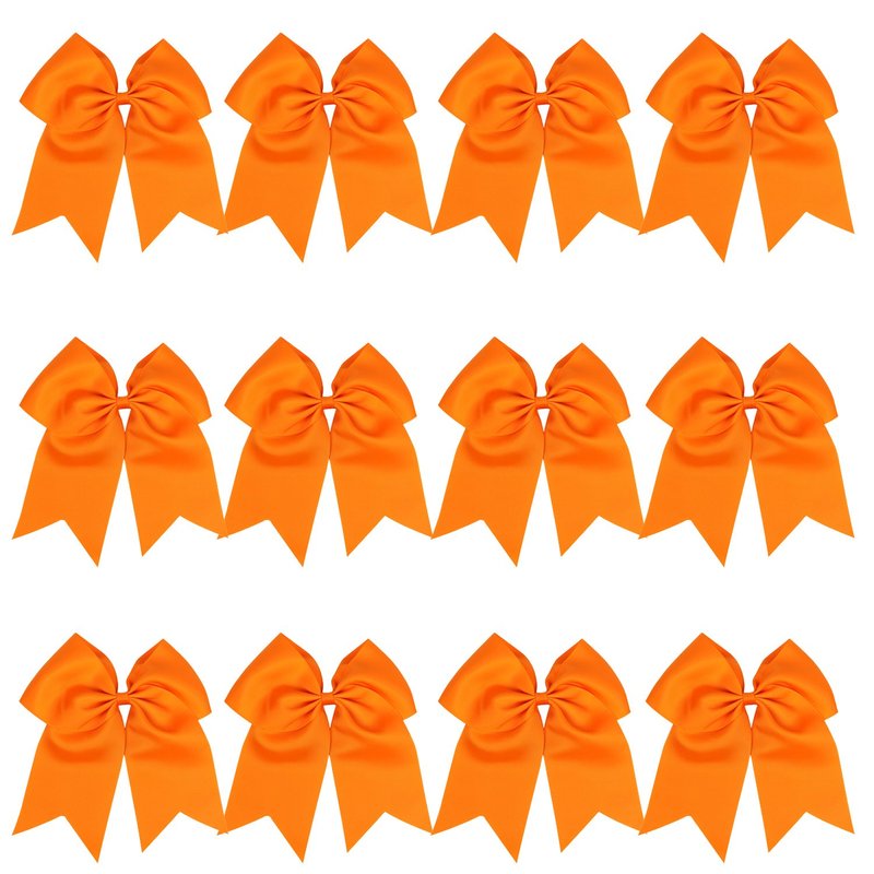8 Inch Cheerleader Bows Ponytail Holder Solid Color Cheerleading Bows Hair Tie (Orange)