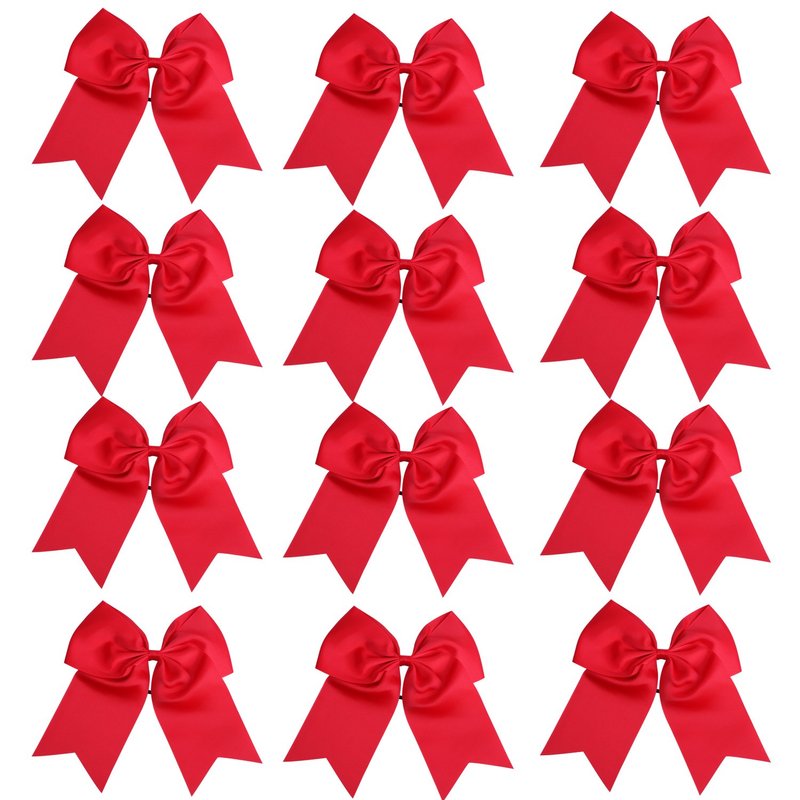 8 Inch Cheerleader Bows Ponytail Holder Solid Color Cheerleading Bows Hair Tie (Red)