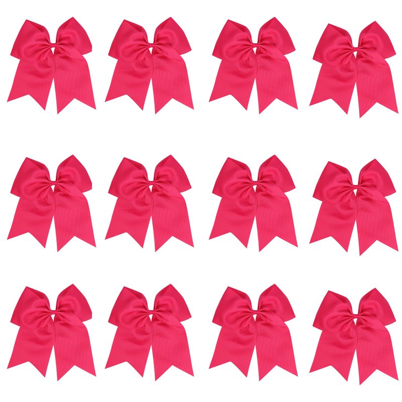 8 Inch Cheerleader Bows Ponytail Holder Solid Color Cheerleading Bows Hair Tie (Shocking Hot Pink)
