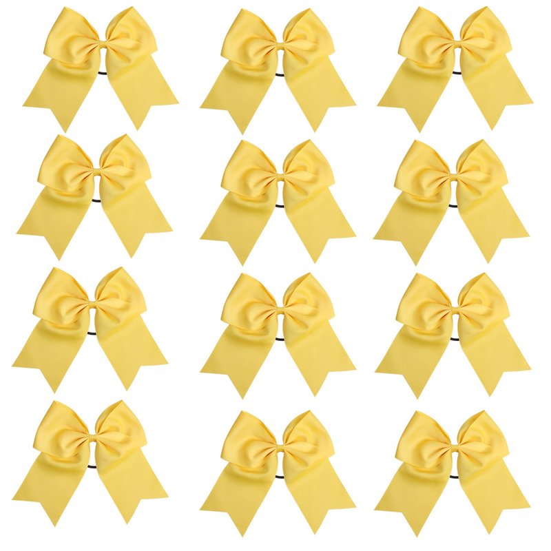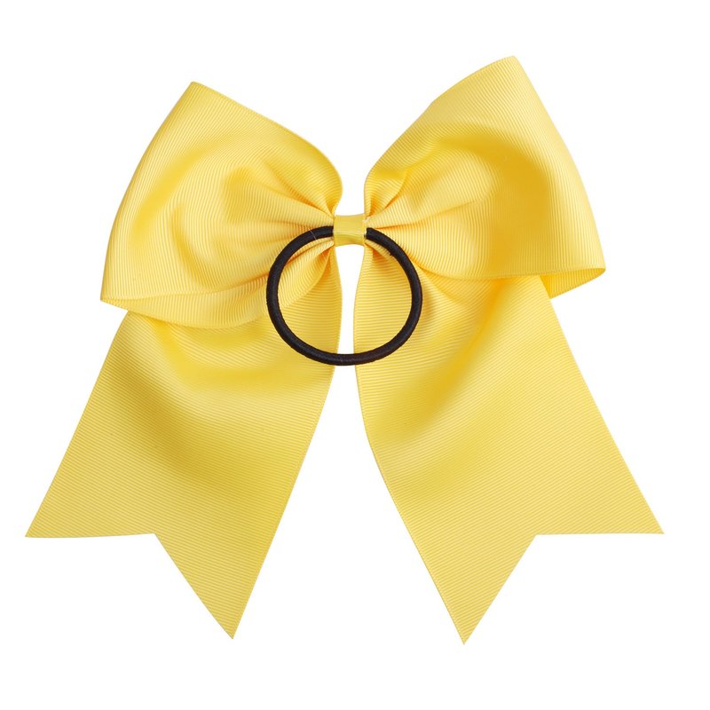 8 Inch Cheerleader Bows Ponytail Holder Solid Color Cheerleading Bows Hair Tie (Yellow)