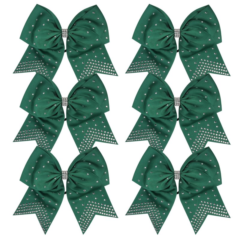 8 Inch Cheerleader Bows Ponytail Holder with Bling Fling Rhinestones Hair Tie Cheerleading Bows 6 Pcs (Forest Green)