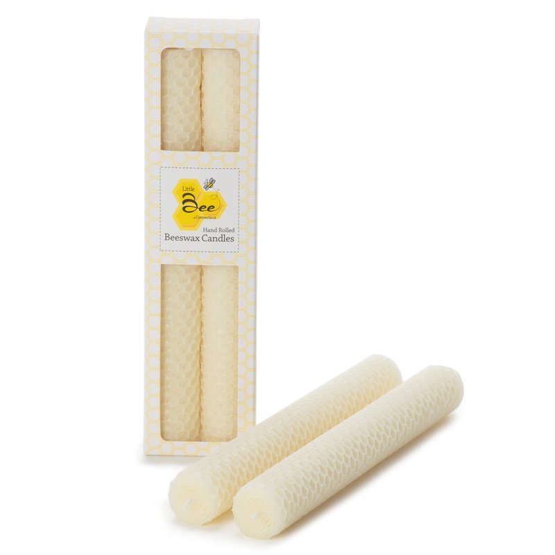 8 Inch Hand-Rolled Beeswax Taper Candles - Little Bee of Connecticut (Single Pair)