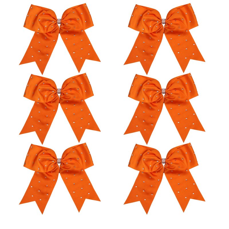 8 Inch Jumbo Cheerleader Bows with Bling Fling Rhinestones Ponytail Holder Cheerleading Bows Hair Tie 6 Pcs College (Orange)